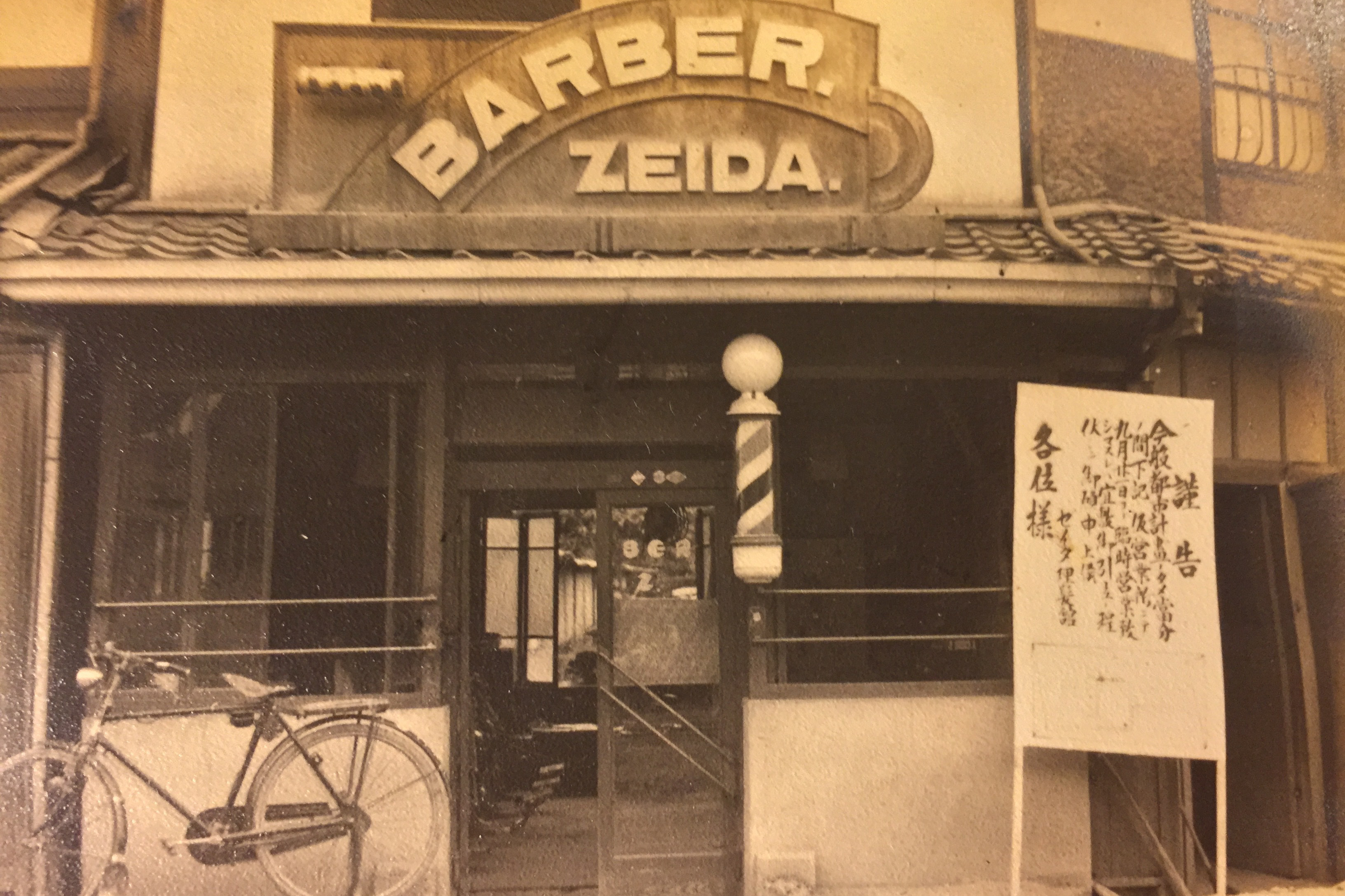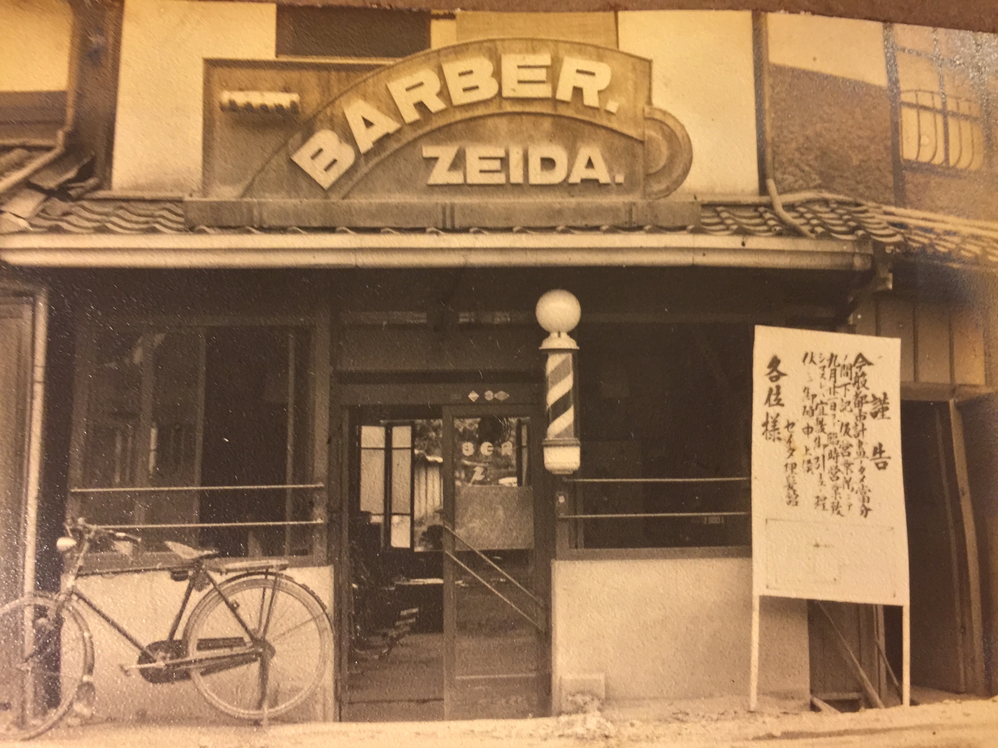 日本の理容の歴史はたったの130年 どんどん新しくなれるという事です 私の爺さんのおじいさんが興した理容ゼイダ 大した商売上手はおらず 誠実にお客様に尽くしてきた結果を 私も大切にしていきます 移転の看板ですね どうやら都市計画で移転するようです 社会のために みなさんのお手伝い 当時の建物は …お粗末ですね 真ん中が曾祖父さん(二代目)です 前列左端が私の祖父(三代目)です この頃から理容店です 実は祖父 層祖父に子が無かったため 末子を準養子をしてとったという実は兄弟 よって私は末子の子の子 まあまあ馬の骨です^^ 今のZEIDAの最新情報はこちらでも ,facebook,,{"facebookPageUrl":"https://www.facebook.com/zeida1885/","boxHeight":"900","boxWidth":"500","dispFace":true,"dispUpdate":true,"dispHeader":true,"wUnit":"px","hUnit":"px"}