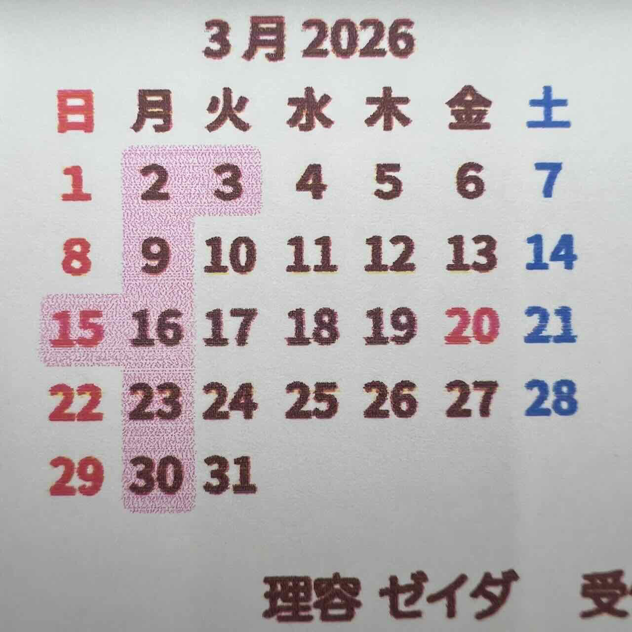 3月のお休みご案内